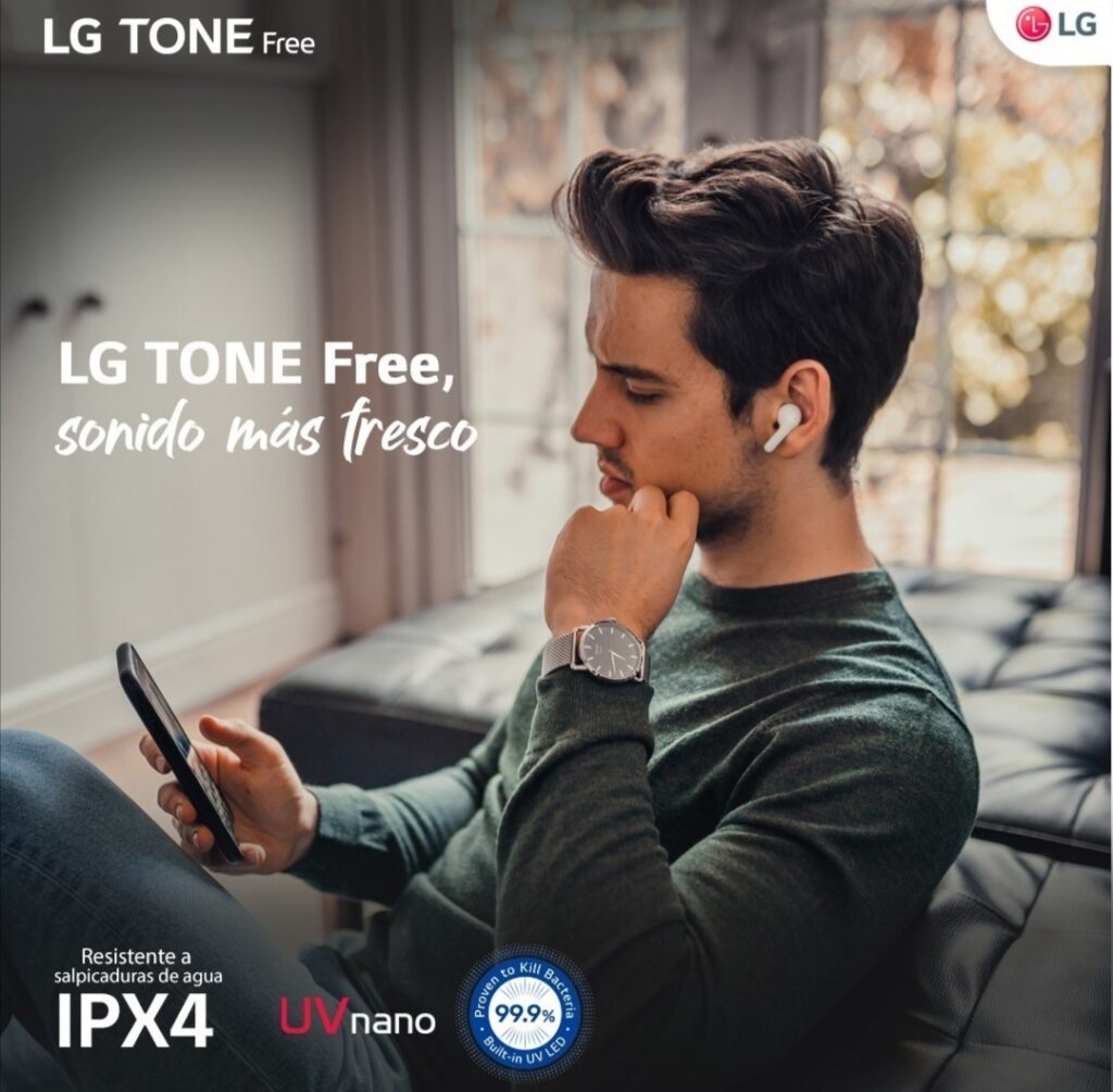 El modelo LG Tone Free FN6, es el primero con auto limpieza con luz ultravioleta UVnano, integrada en su estuche de carga. Con esta tecnología logran reducir en 10 minutos de carga, un 99% las bacterias que habitan en las almohadillas de los audífonos.